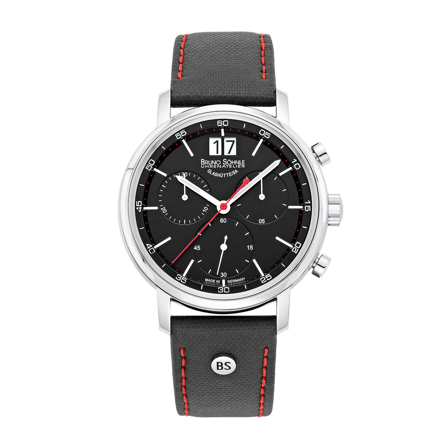 CHARAKTERISTISCHE FEINHEITEN – ein glattes schwarzes Kalbslederarmband (mit Kontrastnaht und Faltschließe) sowie das innen entspiegelte, das Zifferblatt gut schützende Saphirglas runden das außergewöhnliche Design der MARCATO II maßgeblich ab: Gerade diese fein ausgearbeiteten Nuancen definieren eine Herren-Armbanduhr von Bruno Söhnle als einen vielseitigen wie beliebten Zeitmesser, der jedes Outfit gekonnt stilbewusst ergänzt.