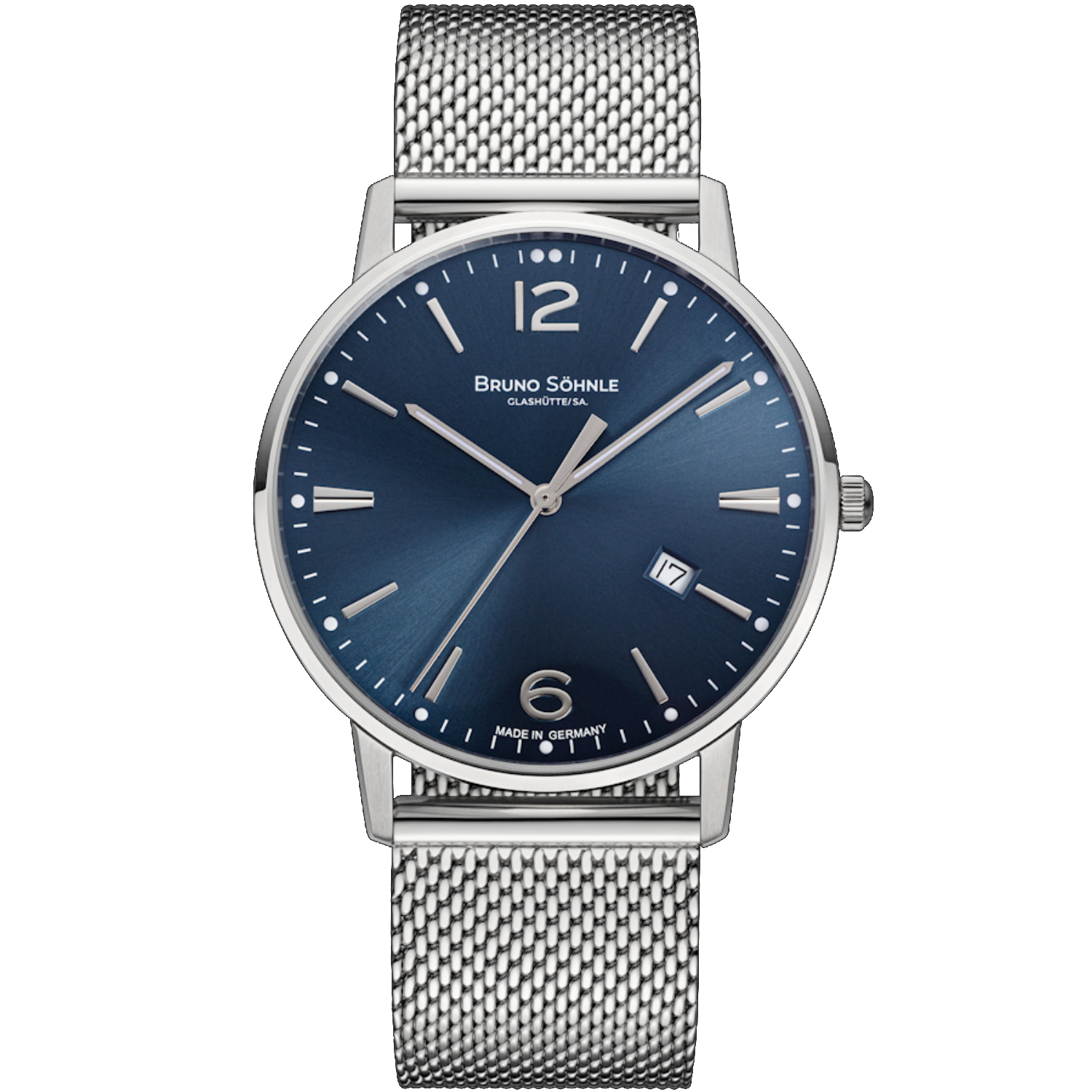 Mit ihrem blau-grauen Zifferblatt und einem fein gearbeiteten Milanaiseband verkörpert die Stuttgart III Big zeitgemäße Raffinesse. Das reduzierte Design wird durch Leuchtelemente ideal ergänzt.