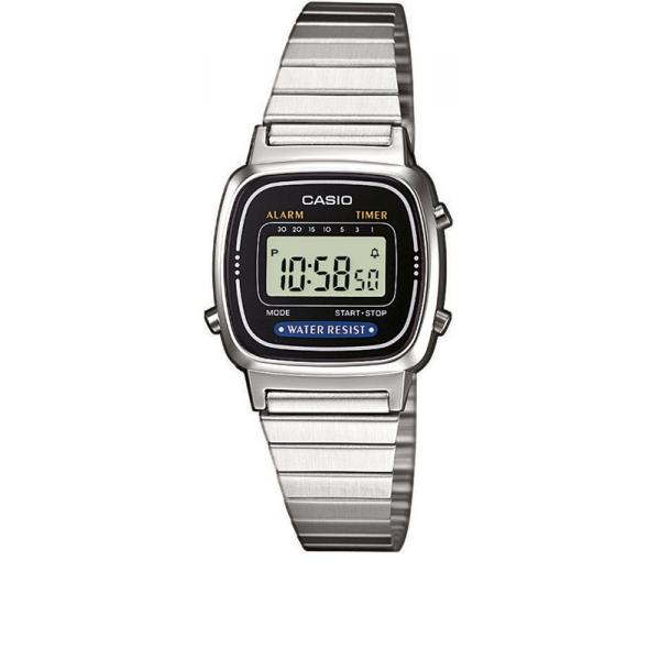 Die Retro-Uhren der CASIO Kollection erinnern im Design an die beliebten Zeitmesser aus der Anfangszeit der LA670WEA-1EF Digitaluhren in den Siebzigerjahren. In ihrem Inneren arbeiten jedoch zeitgemässe LCD Quarzwerke. Casio LCD Retro Alarm Damenuhren – LCD Quartzwerk- Digitale Zeitanzeige (AM/PM 12 Stunden Anzeige)- Kalender, Stoppuhr (1/100s bis 1h)- Tagesalarm- Countdown-Timer- Batterieendeanzeige (ca. 3 Jahre Batteriebetrieb)- verchromtes Kunststoffgehäuse- Kunsthartzglas- verschraubter Stahlboden- korrosionsarme Kunststoffdrücker- einfach » verstellbares Edelstahlband (matt)  mit Klappschliesse- Materialien erfahrungsgemäss antiallergischAutomatischer Kalender, unterschiedliche Monatslängen (28, 30 oder 31 Tage) werden automatisch berücksichtigt. Wasser Resistent (nicht zum Schwimmen geeignet)Kurzfristiger Wasserkontakt ist problemlos 24 x 24.5mm, h: 7.5mm, ca. 35g2 Jahre GarantiePreis inkl. Casio Retrobox, mehrsprachige Gebrauchsanweisung mit Produkteinfos Casio Damenuhr Vintage Mini – LA670WEA-1EF Seit der japanische Uhrenhersteller 1974 mit der CASIO Casiotron seine erste digitale Armbanduhr, die bereits über zehn Zusatzfunktionen verfügte, auf den Markt brachte, ist aus das Damenuhren Sortiment stetig gewachsen. Die kleinen Digitaluhren Kultuhren überzeugt mit einem coolen Retro-Design und praktischen Funktionen. Ein Must-Have für Fashionistas die eine gelungene Kombination aus technischer Perfektion und sportlich-elegantem Look repräsentieren. Die klassischen und trendigen CASIO Retro Uhren, welche teils seit den 70er Jahren designtechnisch unverändert angeboten werden. Original Casio Uhren vom Schweizer Uhrmacher Neue LA670WEA-1EF Uhren mit Garantie des Herstellers. Portofreie Lieferung oder Abholung in Basel. Diese Uhr kann gerne vor einer Kaufentscheidung besichtigt, und auch vor Ort in Basel abgeholt werden. Wir sind offizielle Schweizer Konzessionäre.Gerne machen wir Ihnen ein Angebot für andere Casio Uhren! ⌚ OFFIZIELLE VERTRETUNG Wir verkaufen seit über 50 Jahren Uhren und sind ein zertifizierter Trusted Shop Als autorisierter Schweizer Fachhändler der Marke CASIO profitieren Sie auch online von den entscheidenden Vorteilen hinsichtlich der Echtheit, den Garantieleistungen und des Nachverkaufsservice beim Online-Kauf. Wir führen in unserem Uhren Fachgeschäft in Basel noch weitere Armbanduhren an Lager. Auch bei UHREN-SHOP.ch finden Sie noch mehr Retro Damenmodelle. Einfach auf das Logo klicken »
