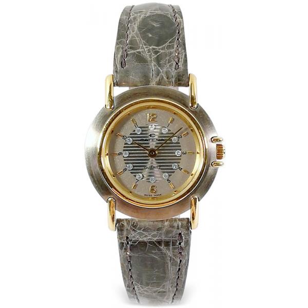 Die Schweizer Uhrmarke Catena steht für modisches Design und höchste Qualitätsansprüche. Der moderne Stil der Uhren sowie das urbane Design sorgt für Inspiration. Extraflache Damenuhren Schweizer präzisions Quartzwerk (ETA) -grau beiges, gemustertes Zifferblatt mit Index und Zahlen (vergoldet) und weissen Similis-Steinen – feine Dauphinezeiger (vergoldet) -Extra flaches Edelstahlgehäuse (matt) – geschützte Flanken – Edelstahlboden (Pressitz) – gehärtetes Mineralglas (flach) – graues Krokolederband mit Prägung (handgenäht) mit Catena-Dornschliesse (vergoldet)ETA-Werk: Low Energie – Standard Battery (-4 Jahre) Echtleder: Die für Leder charakteristische Beschaffenheit der Oberfläche macht jede Uhr zu etwas ganz Besonderem. Leichte Farbabweichungen zum Bild sind daher nicht auszuschliessen. wassergeschützt (nach DIN)(nicht zum Schwimmen geeignet)Ø: 26 mm, h: 5 mm,2 Jahre GarantiePreis inkl. original Box Pflegetipps Bleibt die Uhr stehen, sollte sie sofort zum Fachgeschäft gebracht werden, damit sie kontrolliert und eine evtl. leere Batterie weder in der Uhr noch in der Umwelt Schaden anrichtet (Auslaufgefahr). Der Batteriewechsel sollte regelmässig im Abstand von 1 ½ bis 3 Jahren im Fachgeschäft durchgeführt werden. Gegebenenfalls wird auch der Stromverbrauch und der Zustand der Dichtungen überprüft. Das Lederband Ihrer Uhr ist ein Verschleissteil. Naturprodukte nützen sich durch Feuchtigkeit, Schweiss, Chemikalien und Abrieb ab. Lederbänder sollten deshalb (wie auch aus hygienischen Gründen) je nach Tragegewohnheit alle 6-12 Monate erneuert werden. Beim Wechsel werden auch die Haltestifte (Federstege) überprüft und allenfalls ausgetauscht. Catena Swiss NOS Uhren Hochwertiges Schweizer Uhren Design aus Gruyère. Einzigartig in ihrer Art, zeigt CATENA seit 1947 die Zeit immer wieder von einer anderen Seite. Das Design der zuverlässigen Uhren ist elegant und gleichzeitig zeitlos. Ganz gleich ob zur Jeans oder zum Anzug. Elegante, klassische Armbanduhren für Menschen mit exklusivem Geschmack.