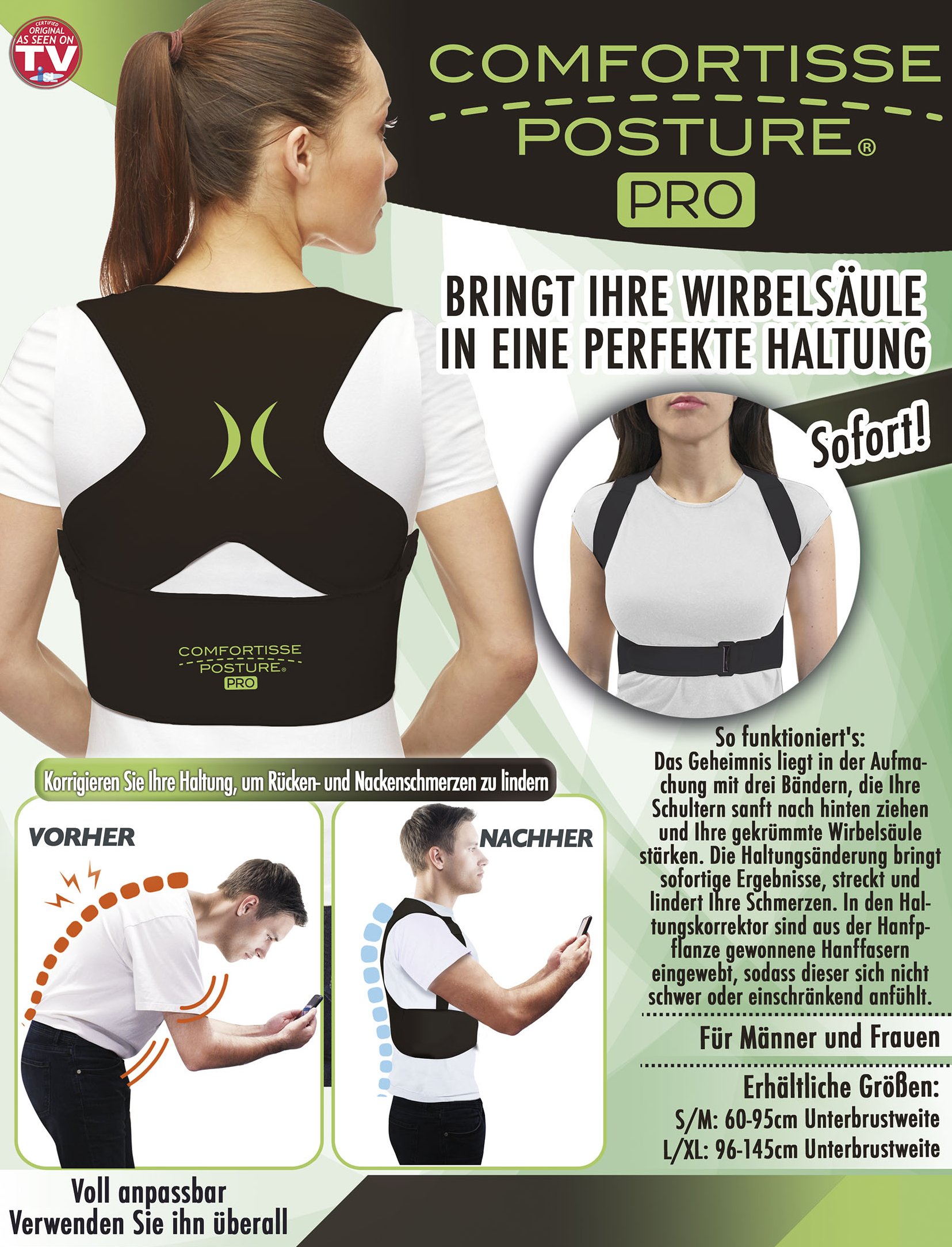 <br /><br />Um Ihren Rücken stets optimal zu halten, gibt's Comfortisse Posture PRO, das Ihre Wirbelsäule in eine perfekte Haltung bringt. Wichtig, um auch dauerhafte Rückenplagen zu vermeiden!