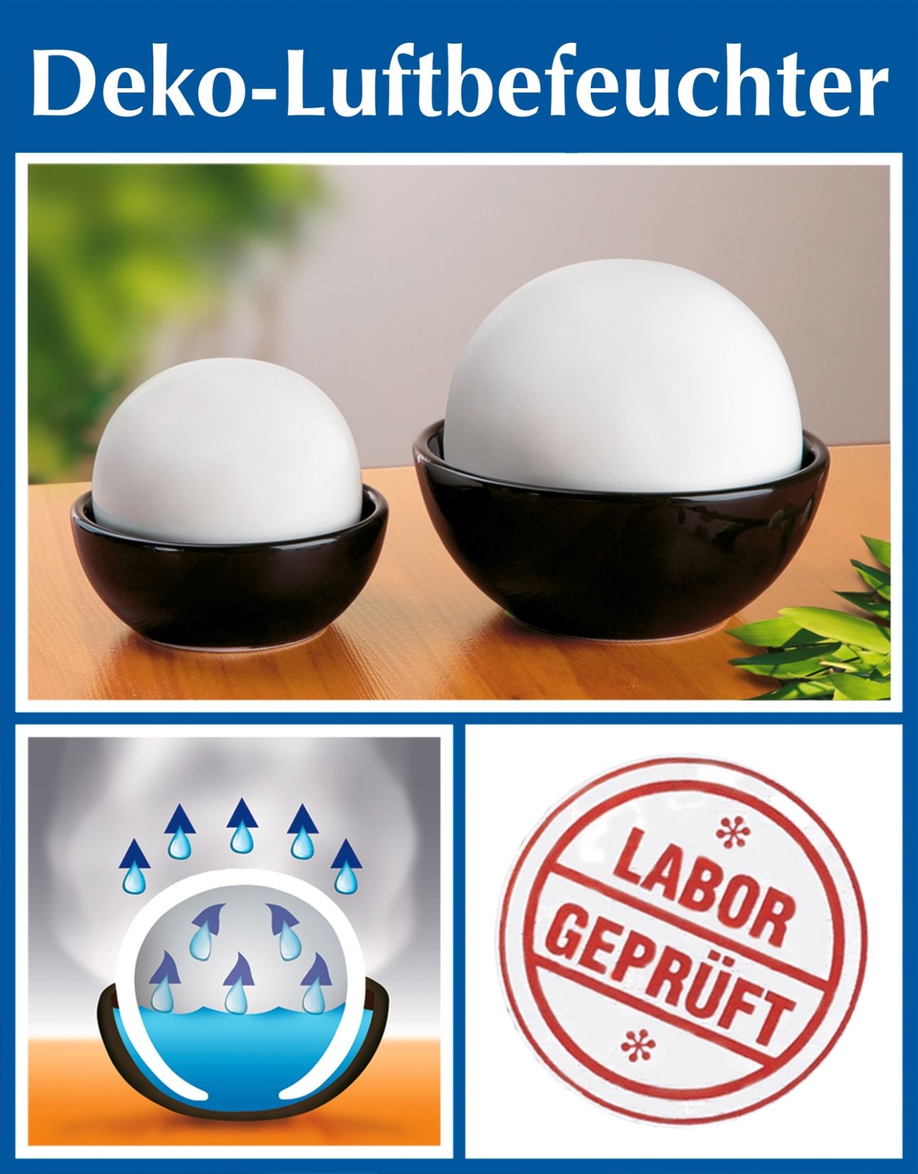 <br /><br />Weltneuheit! Das poröse Material der Kugel erhöht auf Grund von Kapillarkräften die Verdunster-Oberfläche. Saugt sich mit Wasser voll und gibt dieses nach und nach wieder an die Raumluft ab.