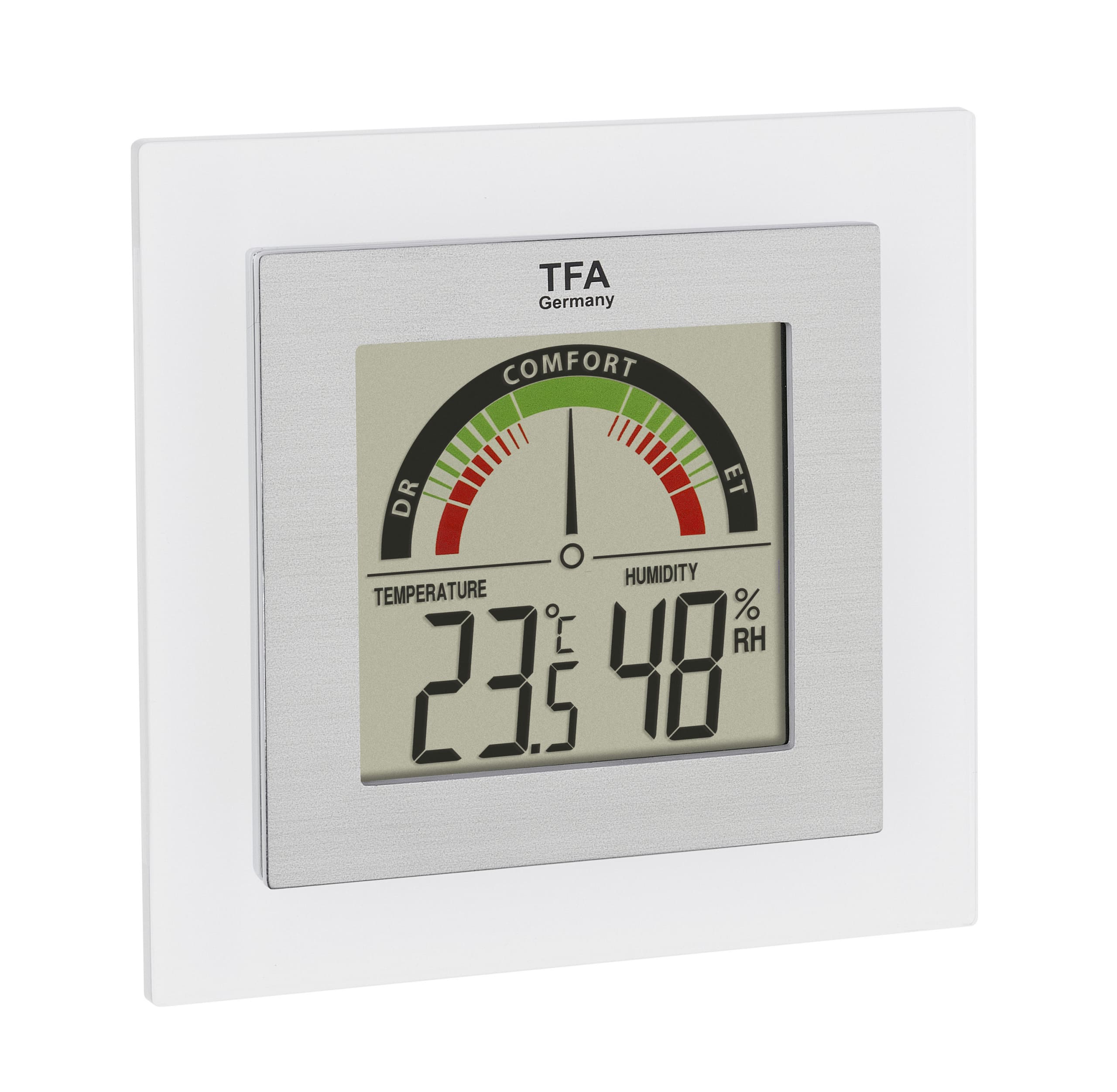 <br /><br />Mit diesem Thermo-Hygrometer können Sie Temperatur und Luftfeuchtigkeit einfach im Blick behalten und durch gezieltes Heizen und Lüften regulieren. Farbige Komfortzonen weisen darauf hin, ob die Raumluft ideal, zu feucht oder zu trocken ist.