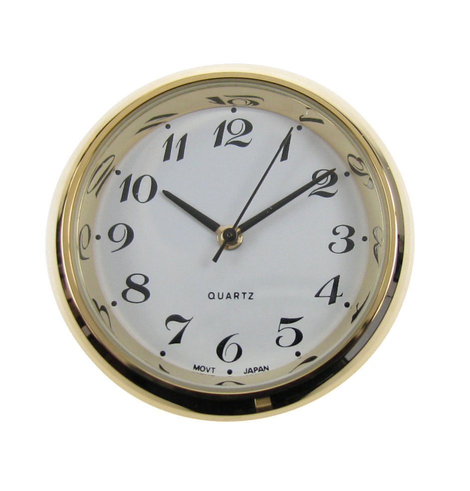Einsteckwerk UTS Trommel Ø 31mm, Lünette Ø 35mm gelb, Zifferblatt weiß-antik, arabische Zahlen