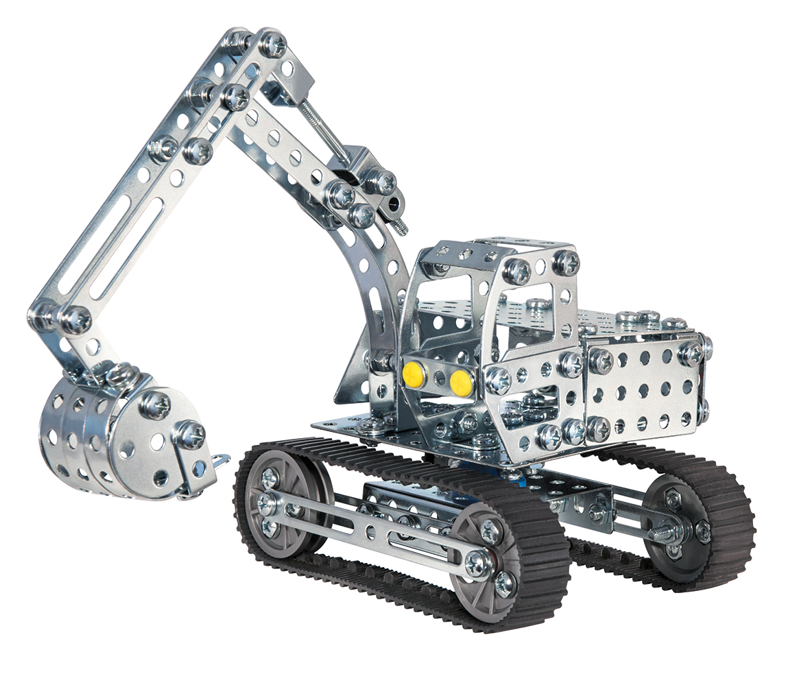<br />Aus über 340 Teilen sind mindestens drei verschiedene Modelle baubar. Baggerarm und Schaufel können bewegt werden, und die Gummilaufbänder sorgen für ein leises Abrollen.