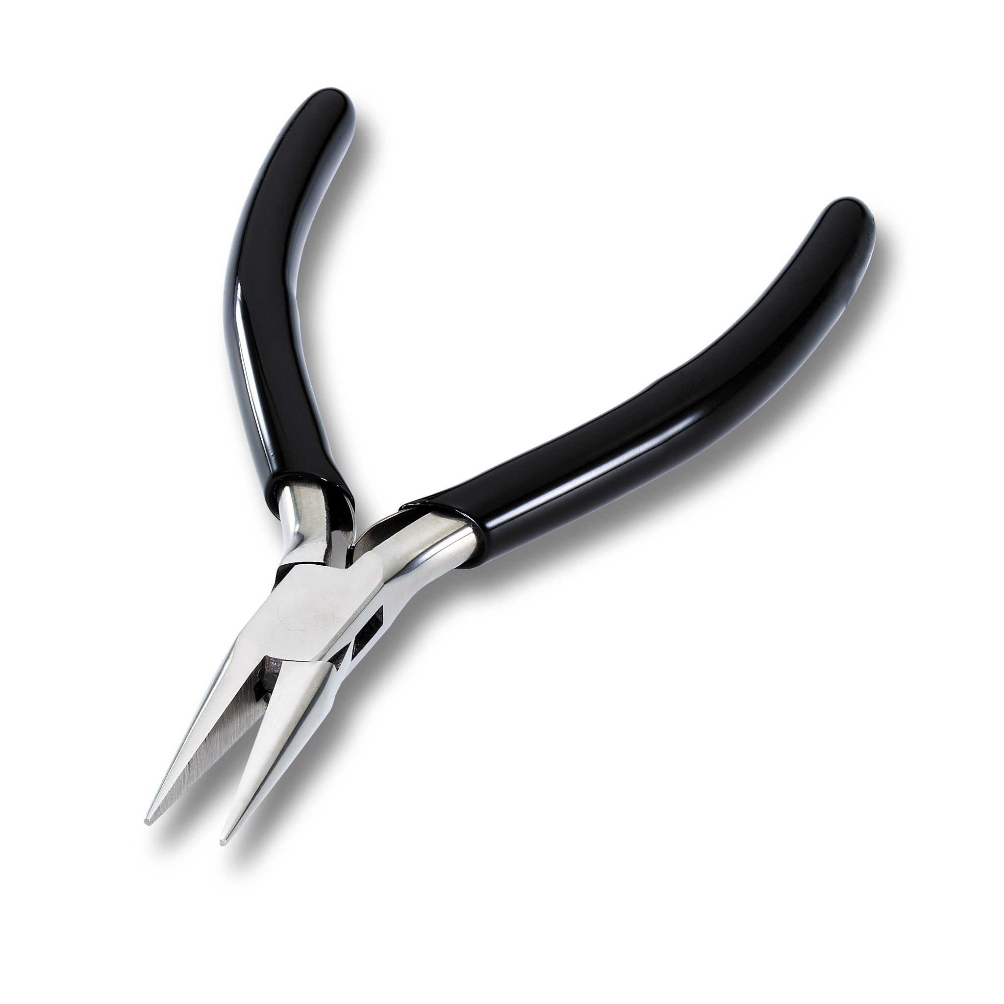 Elektronik-Flachspitzzange mit durchgestecktem Gewerbe.