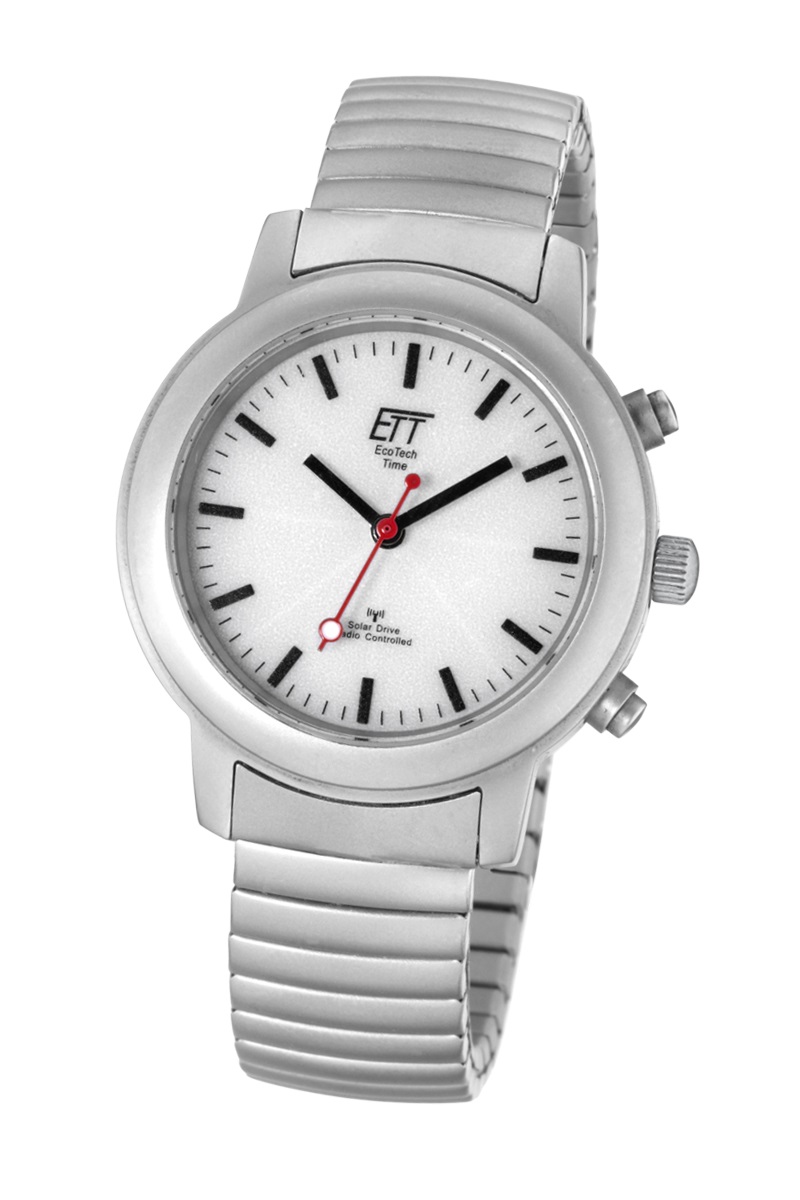 <br /><br />Klassische, schlichte Solar Drive Funk Basic Damenuhr. Das Gehäuse und das Armband der Eco Tech Time Solar Drive Funk Basic Damenuhr sind aus Edelstahl im Titanlook. Das helle Ziffernblatt dieser Damenuhr mit Solartechnik ist durch Mineralglas geschützt. Die Damenuhr ist funkgesteuert mit automatischer Zeiteinstellung.