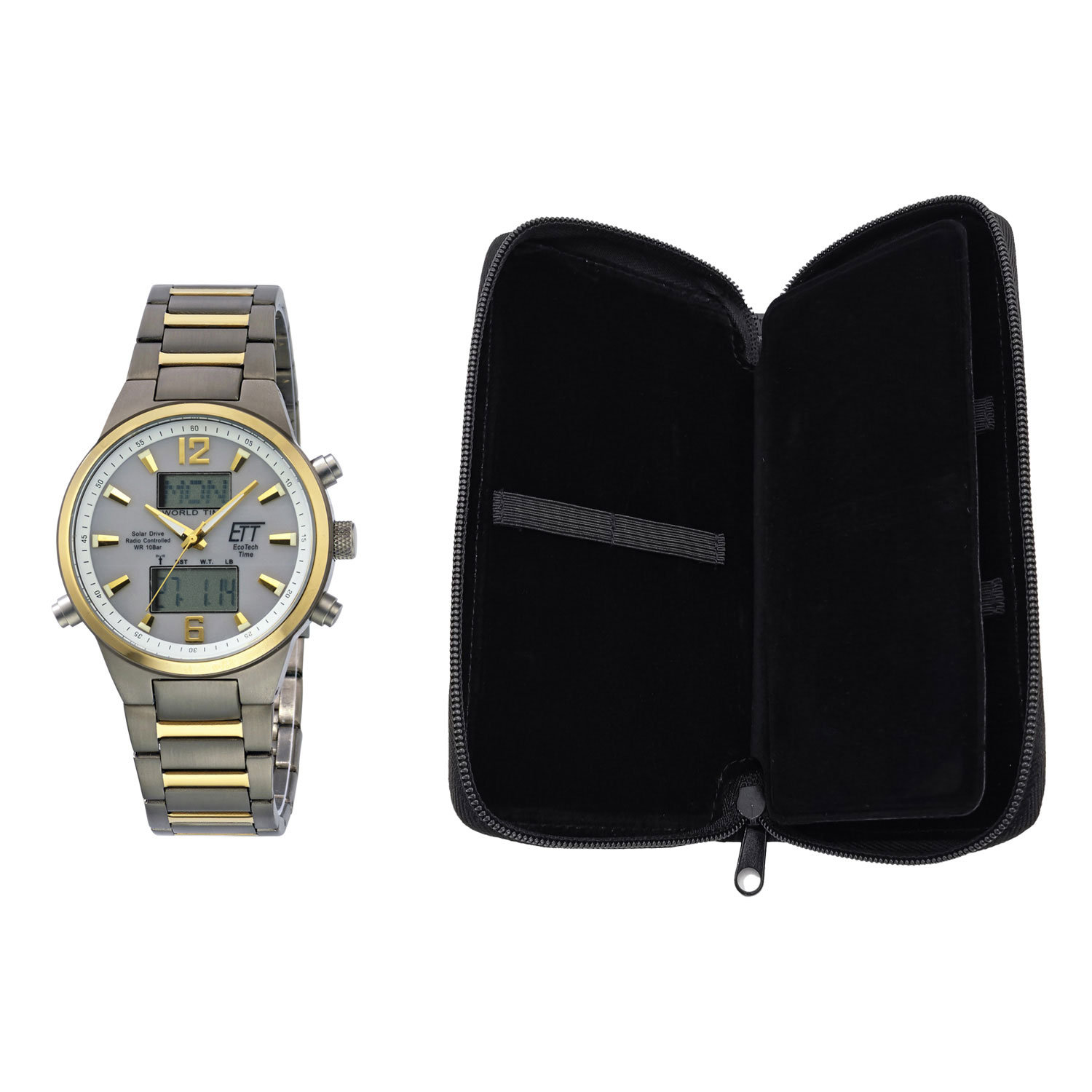 EXKLUSIVSET MIT GRATIS REISE-ETUI: Eco Tech Time Solar Drive Funk Everest II Titan Herrenuhr World Timer – EGT-11323-10M