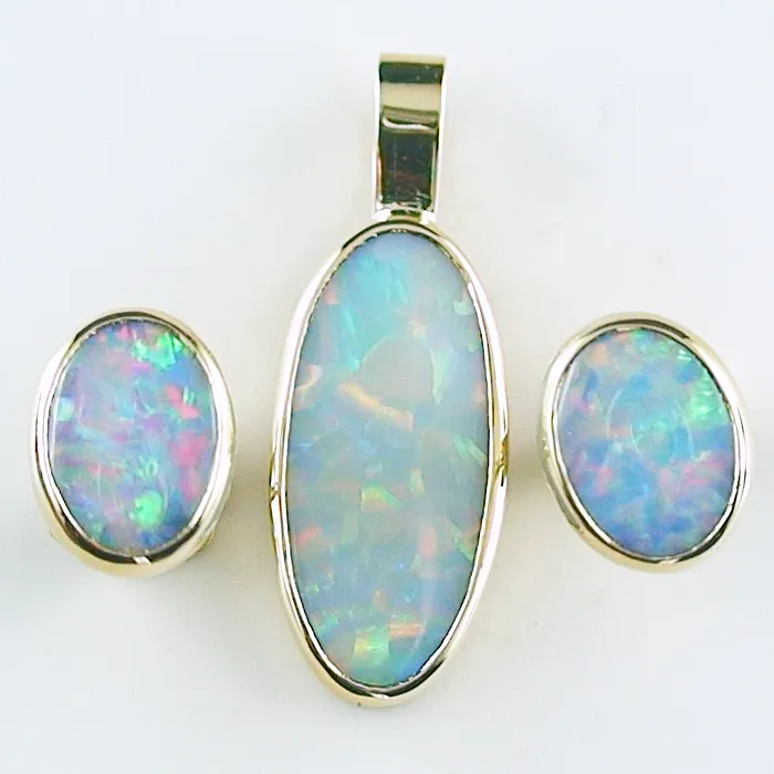 Firey White Opal Schmuckset 2,77 ct. aus 750er Gelbgold – Handgefertigt in unserer eigenen Manufaktur