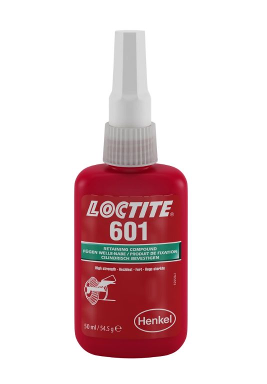 <br /><br />LOCTITE® 601 ist ein grüner, anaerober, niedrigviskoser Fügeklebstoff auf Dimethacrylatester-Basis mit mittlerer Aushärtegeschwindigkeit, der sich für Anwendungen mit einem maximalen Klebespalt von 0,1 mm eignet. Das hochfeste Produkt wird für Verbindungen eingesetzt, die dauerhaft geklebt werden müssen. Auf Stahl beträgt die Zeit zur Erreichung der Handfestigkeit 25 Minuten, der Einsatztemperaturbereich liegt zwischen – 55 °C und +150 °C. Produktüberwachung durch Fluoreszenz.