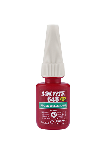 LOCTITE 648 ist ein niedrigviskoser, hochfester Fügeklebstoff. Typische Anwendungen sind das Befestigen von Zahn- und Kettenrädern auf Getriebewellen und von Rotoren auf Wellen von Elektromotoren.