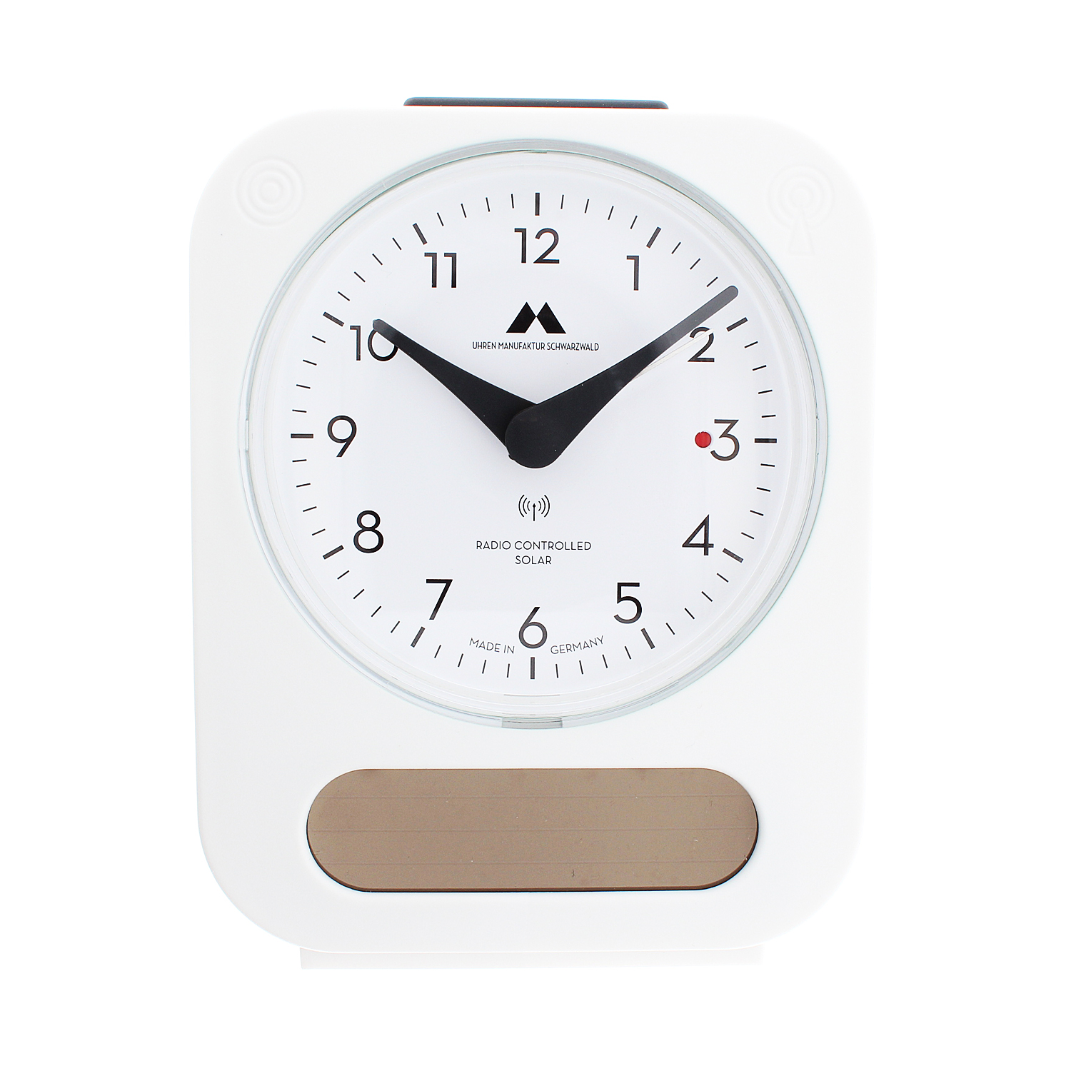 Funk-Solar-Wecker made in Germany Gehäuse weiß/ Zifferblatt weiß