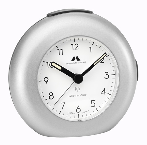 Funkwecker „Made in Germany“! Gehäuse Silber, Zifferblatt weiß