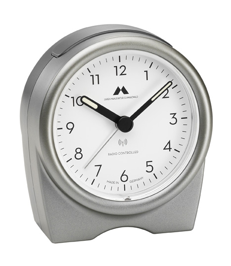 Funk-Wecker made in Germany Gehäuse Titan/ Zifferblatt weiß