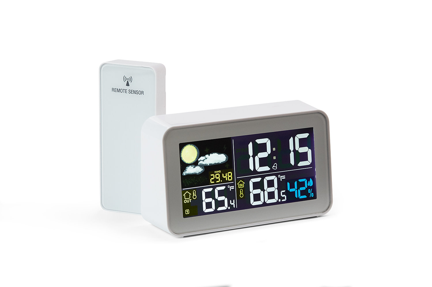 <br /><br />Wettervorhersage, Luftdruckanzeige, Funkuhr, Farbdisplay-Anzeige der Innen- (-10°C bis ca. +50°C) und Außentemperatur (-40°C bis ca. +60°C), Anzeige der Innenluftfeuchtigkeit (20~95% RH).