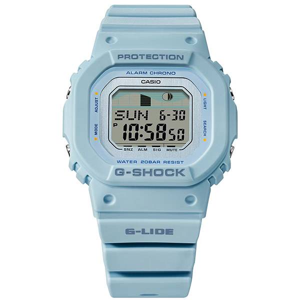 Die mittelgrosse G-SHOCK Uhr kombiniert kantigen 80s Style mit moderner Technologie. Mit dem blauen unisex Modell für Männer und Frauen liegen Sie design- und zeittechnisch immer genau richtig. Von den 80ern über die 90er, das Millennium bis in die heutige Zeit hat die 5600 Serie bereits die verschiedensten Styles gesehen. Mit dem THE ORIGIN. Natürlich ist auch die Grösse gewohnt robust und macht jede Action unbeschadet mit. Casio G-Shock Uhren GLX-S5600-2ER – LCD Präzisionsuhrwerk (Cal. 3523) – digitale Zeit- und Datumsanzeige – Mondphasenanzeige- Ebbe-Flut-Indikator- Stoppuhr (1/100s, 24h) – Countdowntimer   (1/1 Min. – 24 Std., autom. Wiederholung) – Alarmfunktion (sehr leise und nur 10 Sekunden lang) – Illuminator Hintergrund-Beleuchtung (mit Display Flasher) – biobasierendes Kunsthartzgehäuse (hellblau) – Edelstahlboden (verschraubt) – kratzgeschütztes Mineralglas (flach) – biobasierendes Resin-Armband (hellblau) Eine LED blinkt bei Erreichen eines Alarmes, einer Countdown Zeit oder des Stundensignales. Funktionssicher bei Temperaturen von -10C bis +60C 20 ATM wasserdicht (nach DIN) somit auch zum Tauchen geeignet 45.7×40.5mm, h: 11.9mm, ca. 41g 2 Jahre Garantie Preis inkl. original Box, Gebrauchsanweisung mit Produkteinfos THE ORIGIN – 5600 medium Eine Nummer mit einer besonderen Bedeutung für G-SHOCK. Nur jene Modelle, die der DNA der allerersten Generation entsprechen, dürfen diese Kennung tragen. Das eckige Design symbolisiert wie kein Anderes den Ursprung der Marke und steht für die unermüdlichen Bemühungen und kontinuierliche Entwicklung einer Uhr, die nicht kaputt geht, auch wenn man sie fallen lässt. Heute, nach 35 Jahren Entwicklung, steht dieses markante Design wie nie zuvor für die Toughness von CASIO. Innerhalb des shockresistenten Gehäuses lagert das Quarzmodul quasi schwebend und hat keinen direkten Kontakt zum Gehäuse. Dadurch können äussere Shock-Einwirkungen abgefedert werden. Die verwendeten Resinmaterialien zeichnen sich durch ihre besondere Flexibilität und stossdämpfenden Eigenschaften aus. Durch Hervorhebungen am Gehäuse und Lünette werden die Tasten und das Display vor Stössen geschützt. Das Resinarmband in Verbindung mit dem starren Bandanstoss dämpfen äussere Schockeinwirkungen. Zudem erhöht diese Form den Tragekomfort. Original G-Shock Uhren vom Schweizer Uhrmacher Neue Uhr mit Garantie des Herstellers. Die Uhr kann gerne vor einer Kaufentscheidung besichtigt, und auch vor Ort in Basel abgeholt werden. Portofreie Lieferung Wir sind offizielle Schweizer G-Shock Konzessionäre. Gerne machen wir Ihnen ein Angebot für andere » Casio Uhren ⌚ OFFIZIELLE VERTRETUNG Wir verkaufen seit über 50 Jahren Uhren und sind ein zertifizierter Trusted Shop Als autorisierter Schweizer Fachhändler der Marke G-SHOCK profitieren Sie auch online von den entscheidenden Vorteilen hinsichtlich der Echtheit, den Garantieleistungen und des Nachverkaufsservice beim Online-Kauf. Wir führen in unserem Uhren Fachgeschäft in Basel noch weitere digitale Herrenuhren an Lager. Auch bei UHREN-SHOP.ch finden Sie noch mehr Casio Modelle. Einfach auf das Logo klicken »