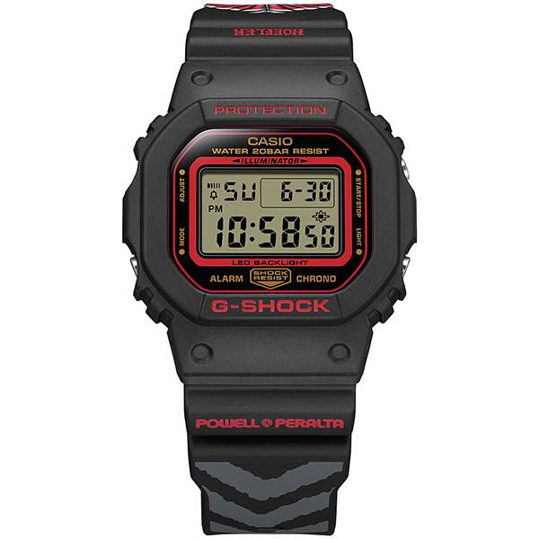 Die klassische DW-5600 verleiht Ihnen urbanes Flair – mit der typischen Hoefler-Grafik auf dem Armband und der Signatur des Olympiasiegers im Skateboard auf der Rückseite des Gehäuses. Wenn Sie per Knopfdruck die LED-Hintergrundbeleuchtung aktivieren, wird auf dem Display das Logo von Powell Peralta angezeigt. Im Rahmen dieser inspirierenden Kollaboration zwischen der Top-Marke der Skaterszene, dem herausragenden Athleten des Team G-SHOCK und Casio ist ein schlichtes, aber einzigartiges Design entstanden, das bei Skateboard-Fans auf jeden Fall für grosse Begeisterung sorgen wird. Casio G-Shock Uhren DW-5600 – LCD Präzisionsuhrwerk (⬈ Cal. 3525)- Digitale Zeit- und Datumsanzeige- Stoppuhr (1/100s, 24h)- Countdowntimer- Alarmfunktion- Illuminator Light (Hintergrund-Beleuchtung)- robustes Kunststoffgehäuse (schwarz)- geschützte und korrosionsarme Kunststoffdrücker – Edelstahlboden (verschraubt)- kratzgeschütztes Mineralglas (flach)- bedrucktes Resin Armband (schwarz)Alarmfunktion (sehr leise und nur 10 Sekunden lang) Egal, wie die Termine auch verteilt sind, diese Uhr hat den richtigen Alarm. Insgesamt vier Varianten sind möglich: 1. Täglicher Alarm, ertönt täglich zur gleichen Zeit, 2. Datumsalarm, um z. B. an Geburtstage zu denken, 3. Monatlicher Alarm, ertönt monatlich am gleichen Tag zur gleichen Zeit, 4. Alarm für jeden Tag eines bestimmten Monats.Funktionssicher bei Temperaturen von -10C bis +60C20 ATM wasserdicht (nach DIN)somit auch zum Tauchen geeignet 49 x 43 mm, h: 13.5 mm, ca. 52g2 Jahre GarantiePreis inkl. original Box, Gebrauchsanweisung mit Produkteinfos Casio Uhren – ABSOLUTE TOUGHNESS Eigenständig wie der Name, ist auch die Robustheit – 100% shockresistent. CASIO ist seit mehr als 30 Jahren mit dem extravaganten G-SHOCK Konzept weltweit erfolgreich. Die neusten G-SHOCK Generationen weisen eine noch nie erreichte Schockresistenz auf, welche allen Extremsituationen standhält. Mit den knalligen Farben und dem trendigen Image ist G-SHOCK aber nicht nur eine Sportuhr, sondern ein trendiges Accessoire, welches auch bei Stars aus Film, Fashion und Musik sehr beliebt ist. Original G-Shock Uhren vom Schweizer Uhrmacher Neue Uhr mit Garantie des Herstellers. Die Uhr kann gerne vor einer Kaufentscheidung besichtigt, und auch vor Ort in Basel abgeholt werden. Portofreie Lieferung. Einzigartig wie der Name, ist auch die Robustheit – 100% shockresistent. CASIO ist seit mehr als 35 Jahren mit dem extravaganten G-SHOCK Konzept weltweit erfolgreich. Die neusten G-SHOCK Generationen weisen eine noch nie erreichte Schockresistenz auf, welche allen Extremsituationen standhält. Wir sind offizielle Schweizer G-Shock Konzessionäre. Gerne machen wir Ihnen ein Angebot für andere » Casio Uhren ⌚ OFFIZIELLE VERTRETUNG Wir verkaufen seit über 50 Jahren Uhren und sind ein zertifizierter Trusted ShopAls autorisierter Schweizer Fachhändler der Marke G-SHOCK profitieren Sie auch online von den entscheidenden Vorteilen hinsichtlich der Echtheit, den Garantieleistungen und des Nachverkaufsservice beim Online-Kauf. Wir führen in unserem Uhren Fachgeschäft in Basel noch weitere digitale Herrenuhren an Lager. Auch bei UHREN-SHOP.ch finden Sie noch mehr Casio Modelle. Einfach auf das Logo klicken »
