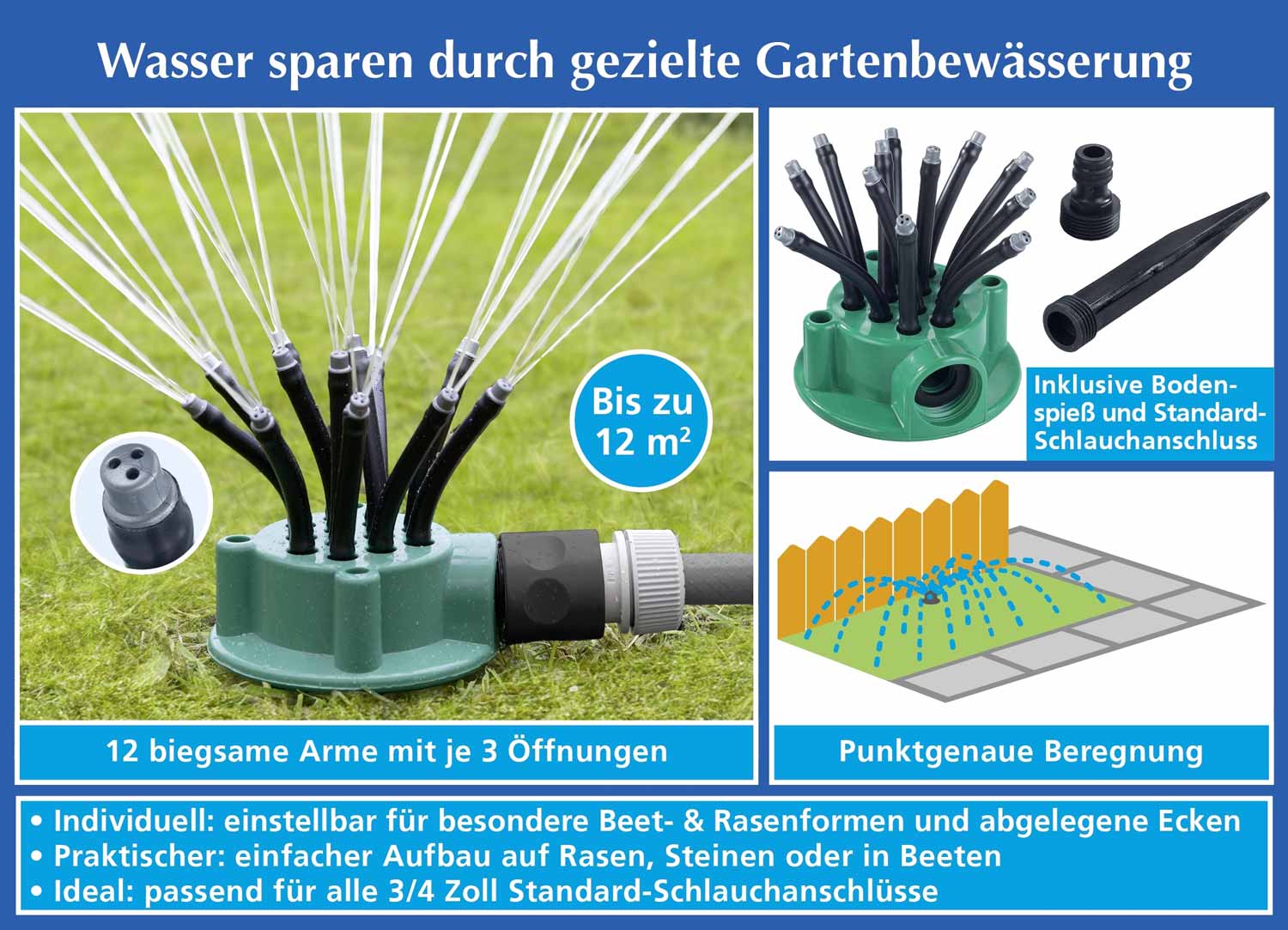 <br />• 12 biegsame Arme mit je 3 Öffnungen für punktgenaue Beregnung