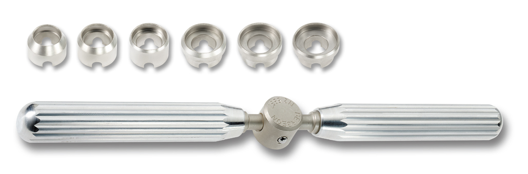 Haltegriff mit 6 auswechselbaren Einsätzen 4 220 025 bis 4 220 030) für Schweizer Uhren mit Riffelung.