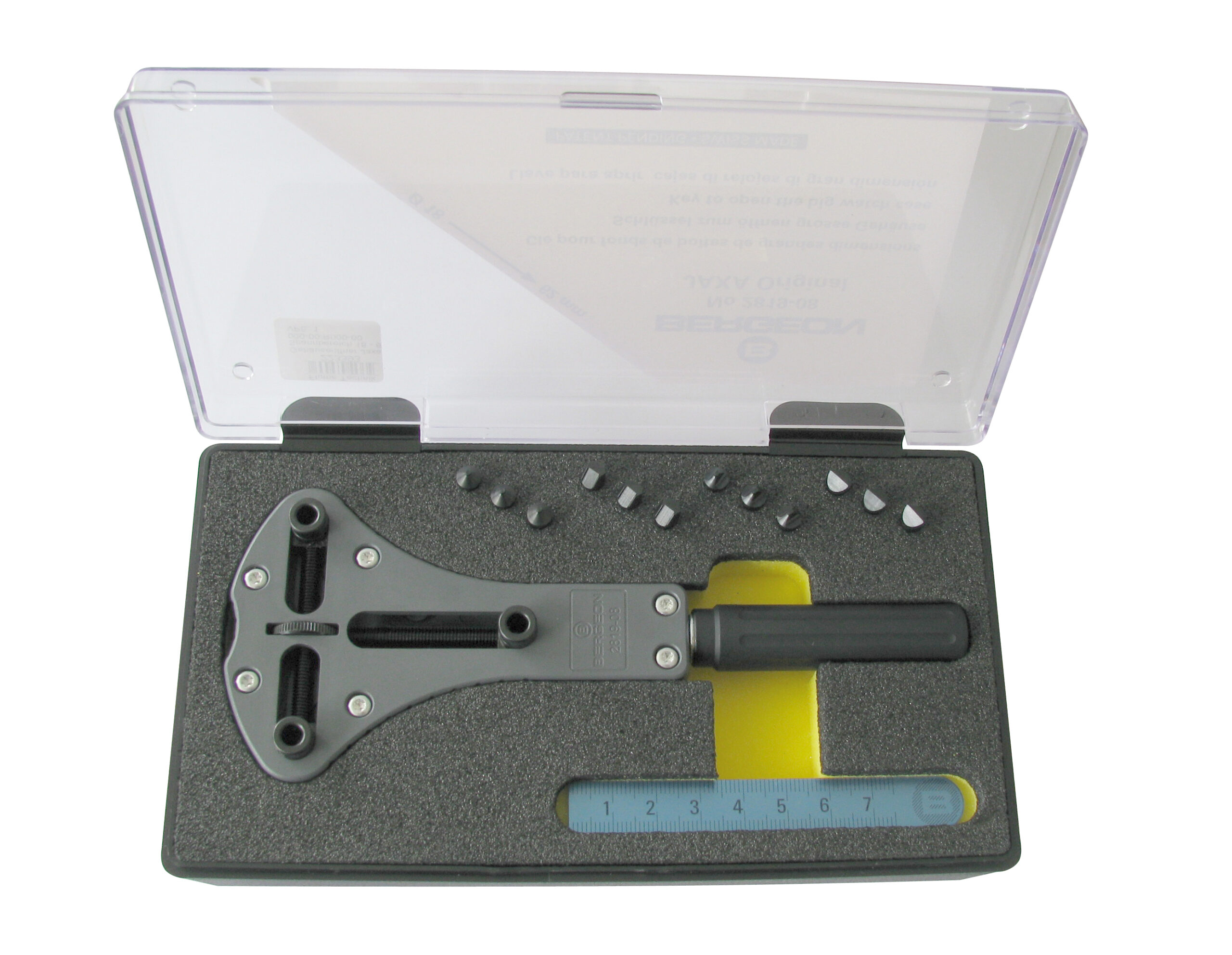 Auf Plastiksockel. Zur sicheren Fixierung in der Gehäuseaussparung sind 3 verstellbare Spannbacken über den Handgriff bzw. eine Rändelmutter einstellbar. Der max. Spannbereich beträgt 62 mm.