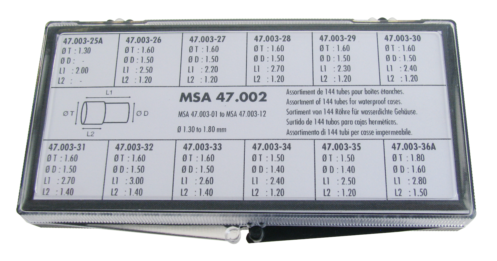 Gehäusetuben Sortiment für WD-Gehäuse Ø 1,3-1,5-1,6-1,8