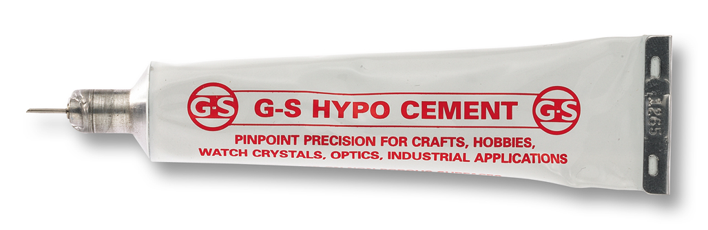 Klebstoff für Plexi- und Mineralgläser. Tube mit feiner Kanüle und Schutzkappe.