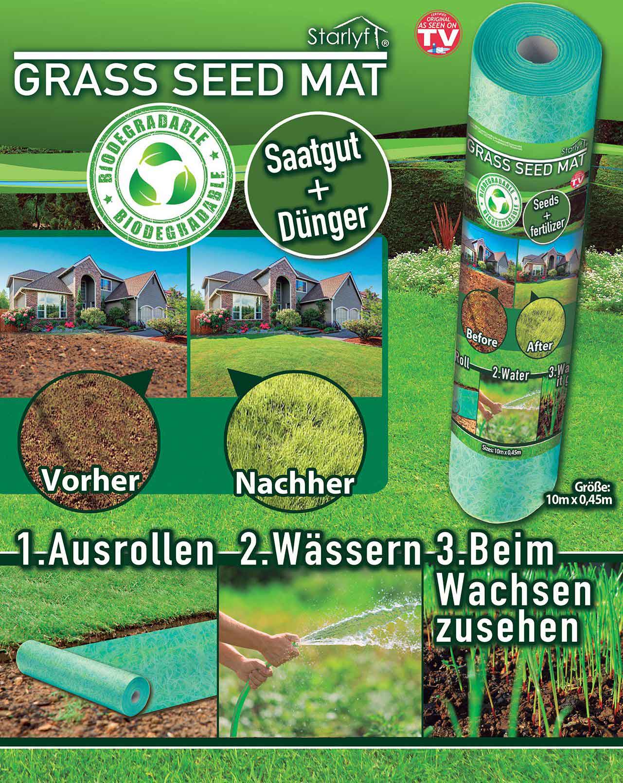 <br />• Grass Seed Mat ist eine biologisch abbaubare Grassamenmatte.