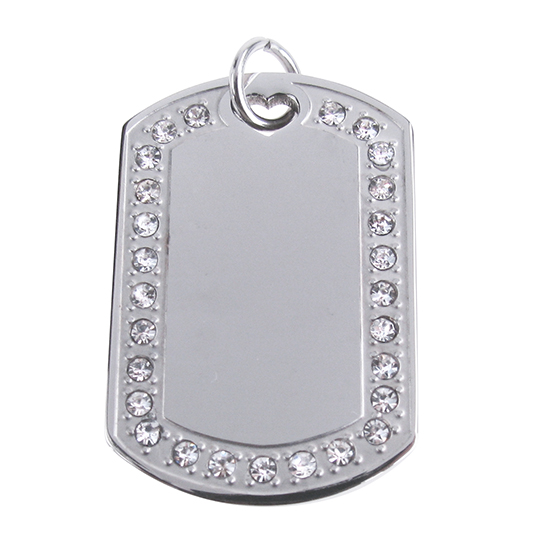 Gravurplatte Edelstahl Dog-Tag mit Zirkonia