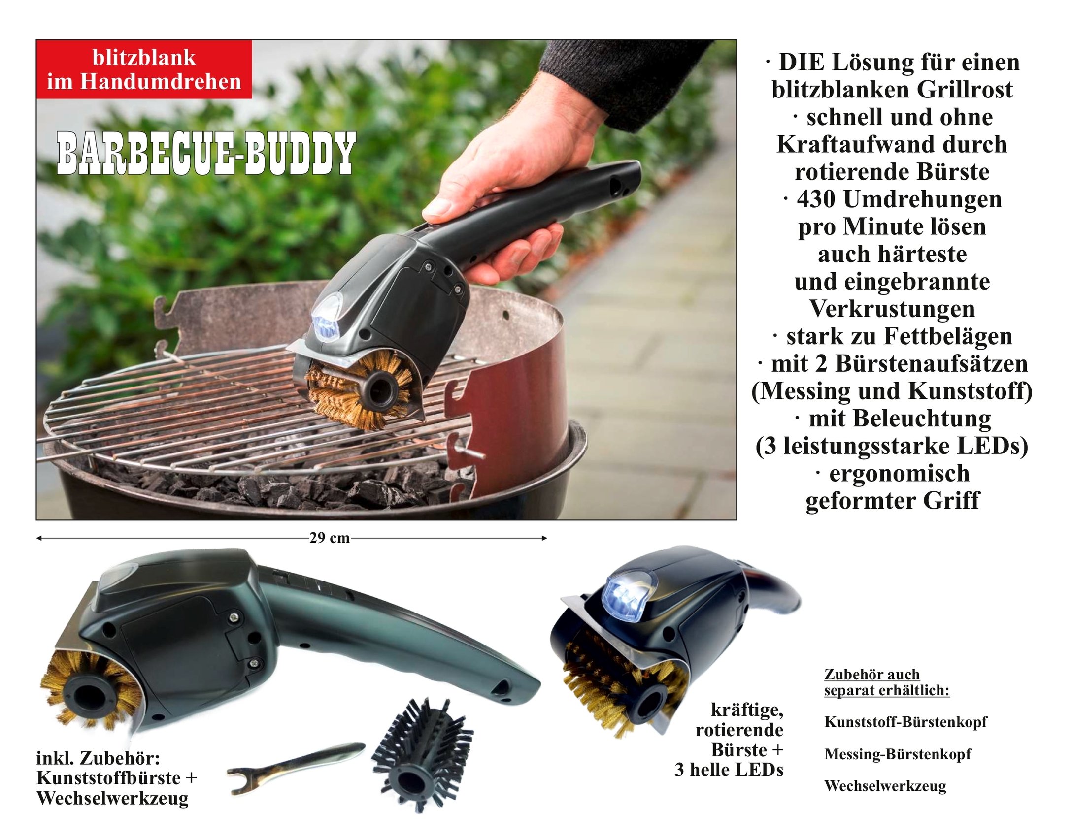 <br /><br />Der elektrische Grillrostreiniger mit rotierender Bürste nimmt sich dieser ungeliebten Arbeit an und avanciert schnell zu einem echten Barbecue-Buddy!