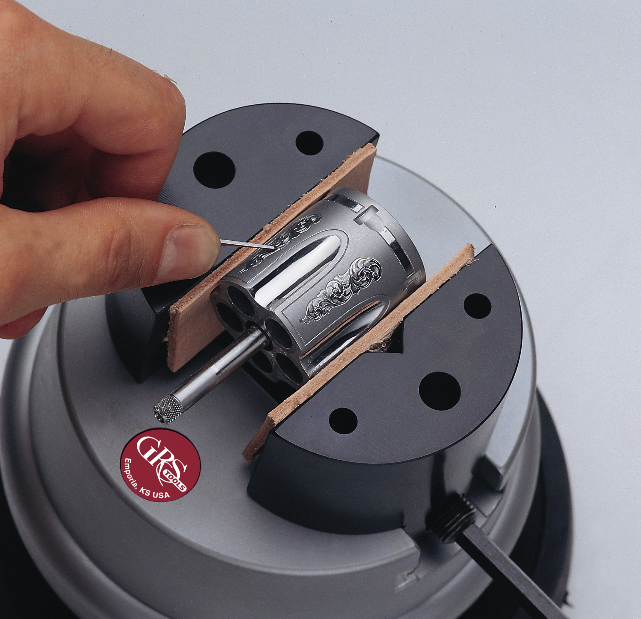 Dickes, genarbtes Lederstücke zum sicheren Halten der Werkstücke in jedem Schraubstock oder in jeder Gravierkugel.