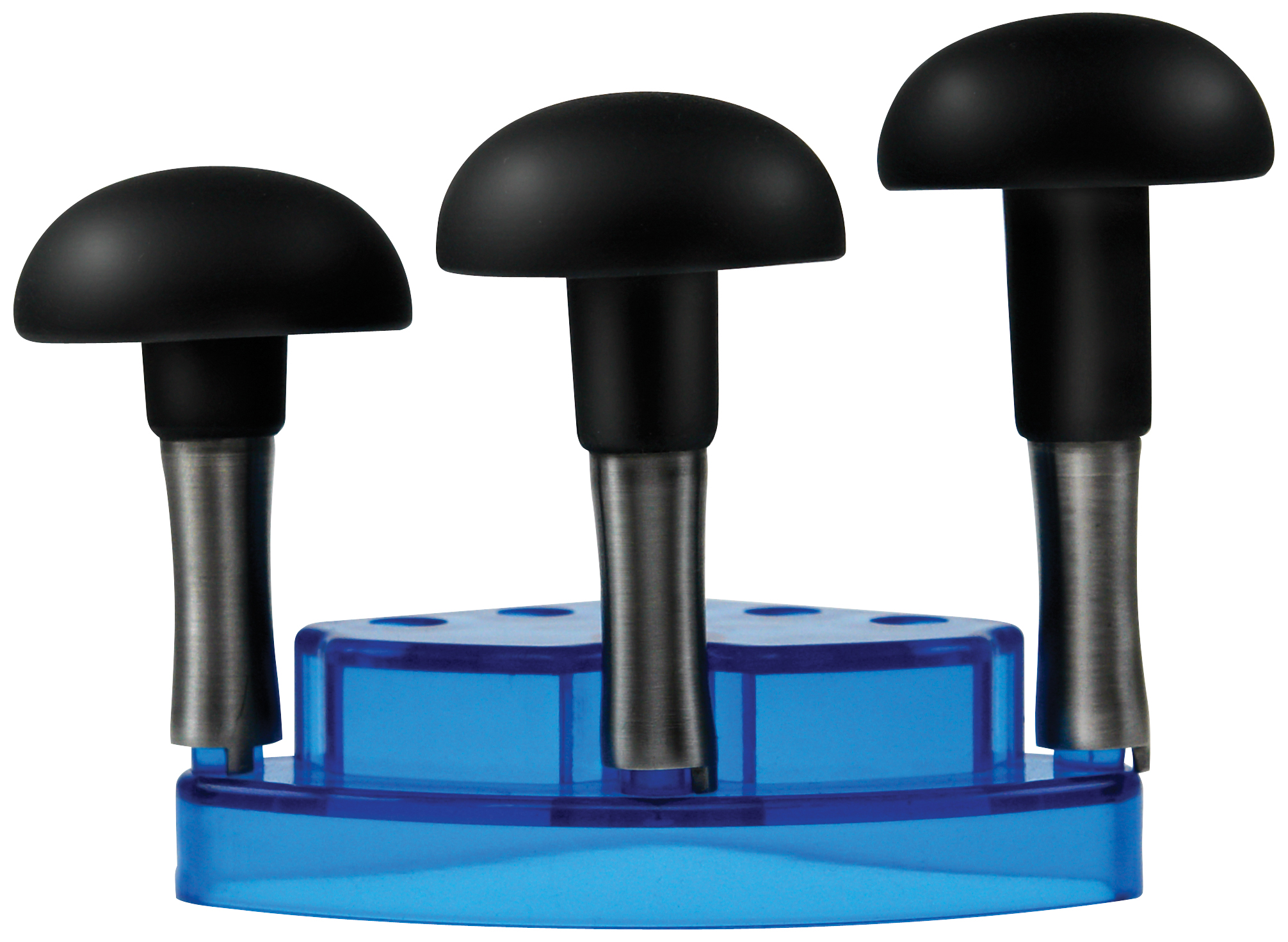 Das GRS Schnellwechsel-Werkzeughaltersystem wird laufend erweitert. Wenn ein Werkzeug durch Gebrauch oder Nachschärfen kürzer wird, ermöglichen die längeren Hefte weiterhin eine gute Handhabung und Führung des Werkzeugs und verlängern somit dessen Nutzungsdauer. Die Hefte sind aus gedrehtem Edelstahl gefertigt und verfügen über einen nahezu unzerbrechlichen, glasfaserverstärkten Thermoplastik-