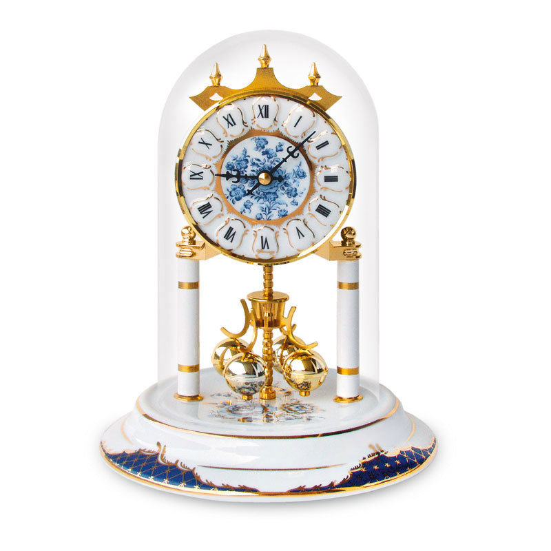 <br /><br />Sockel und Zifferblatt sind aus feinem Porzellan, Krone und Pendel aus poliertem Messing.
