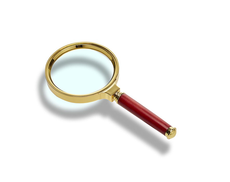 Handlupe mit Glaslinse, Linsen-Ø 70mm, Vergrößerung 3,0-fach. Abschraubbarer Holzgriff.