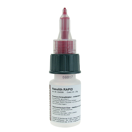 <br /><br />Der neue Hasulith Rapid Premium Schnellkleber ist die Alternative für alle Arbeiten, bei denen sich kein weißer Belag, wie sonst bei Sekundenklebern üblich, ansetzen darf.