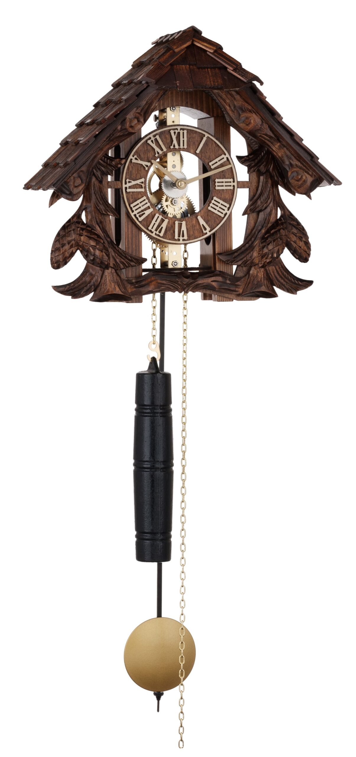 <br /><br />Moderne Kuckucksuhr mit 8-Tage-Pendel-Skelettuhrwerk.