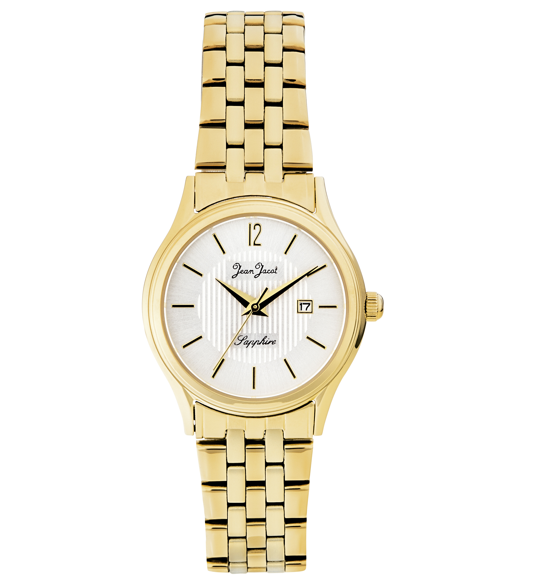 <br /><br />IPG-vergoldetes Edelstahlgehäuse poliert/satiniert; Silberfarbenes Zifferblatt mit aufgelegten Ziffern, goldfarbene Zeiger; Datums- und Zentralsekundenanzeige. Quarzuhrwerk. Saphirglas, Edelstahlboden.