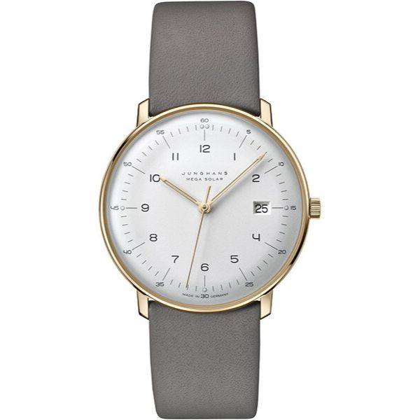 Junghans MAX BILL 38 Mega Solar Funkuhr, vergoldet weiss Zahlen