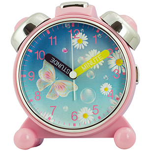 Kinderquarzwecker zum Erlernen der Uhrzeit, mit Lernzeigern, großen Ziffern, mit Licht und Weckwiederholung, Alarm mit Glocke oder ""Beep"" wählbar, schleichende Sekunde, daher ohne Tick-Tack-Geräusche!