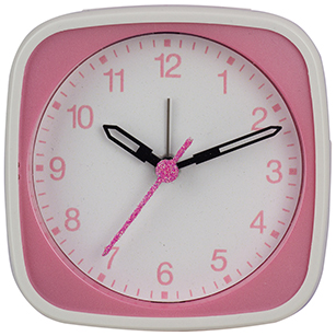 Kinderquarzwecker mit Glitzerzeiger, mit Licht und Weckwiederholung, schwebende Sekunde, daher keine Tick-Tack-Geräusche.