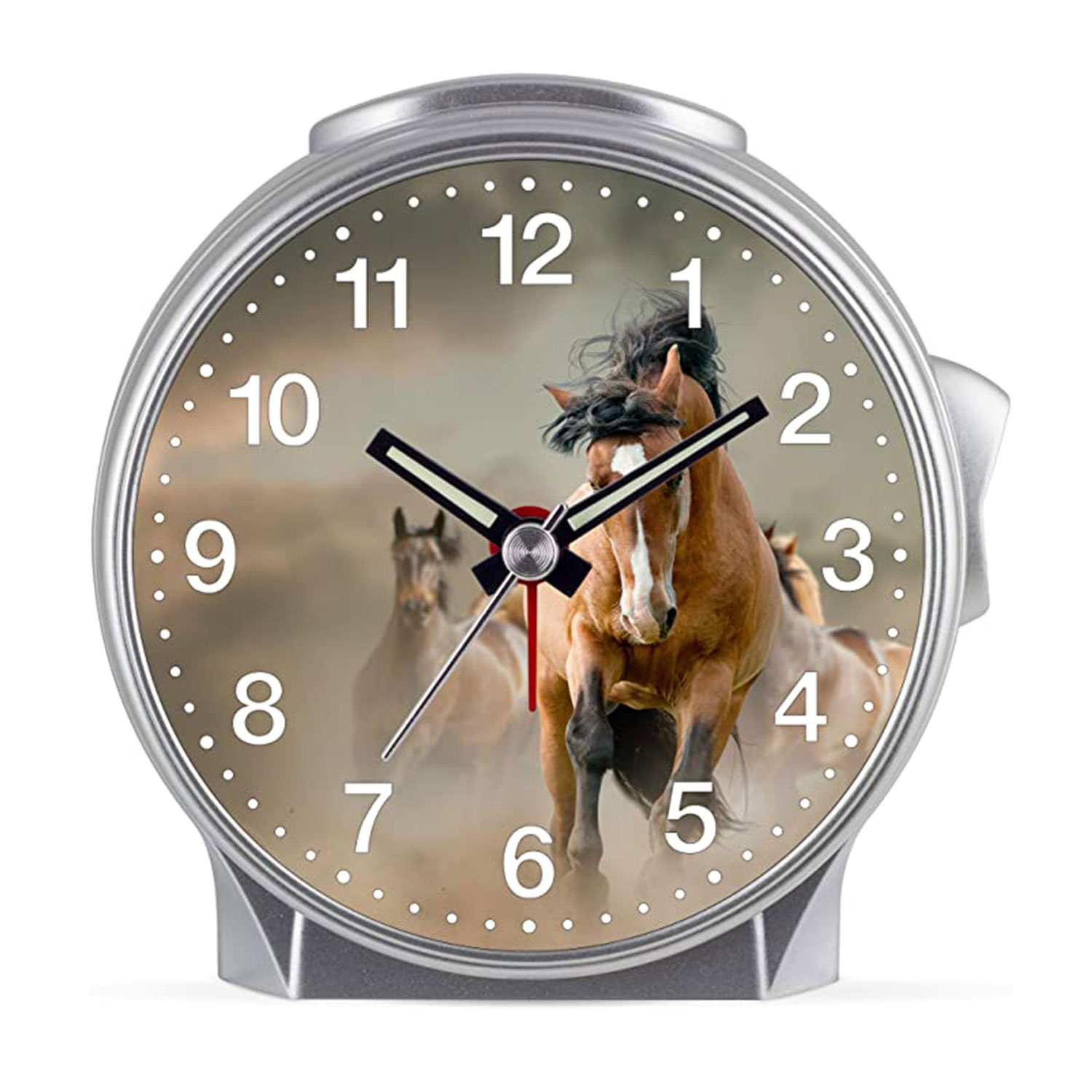 <br />Das mit großen arabischen Ziffern versehene, von einem beeindruckenden Pferde-Motiv geprägte Zifferblatt zeugt von einer kindgerechten Optik. Darüber hinaus verhindert eine schleichende Sekunde ein unliebsames Tick-Tack und ermöglicht den Kleinsten somit jederzeit einen ungestörten Schlaf. Ausgestattet ist der Kinderwecker mit einem zuverlässigen Quarzwerk.