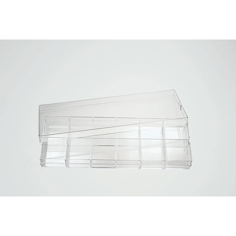 <br />12 Fächer à 24 x 24 x 16 mm. Außenabmessungen: 157 x 54 x 19 mm.