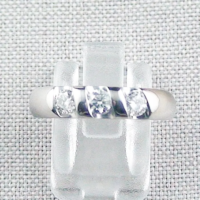 Haben Sie Lust auf einen wunderschönen massiven Goldring mit 3 x 0,20 ct Diamant TW vsi – Unikat-Schmuck bei der Opal-Schmiede herstellen lassen! Als Auftragsarbeit können Sie bei der Opal-Schmiede diesen traumhaft schönen und massiven sowie sehr edlen Brillantring mit 3 x 0,20 ct Diamant TW vsi aus Gelbgold oder aus Weißgold mit Ihrer Ringgröße herstellen lassen. Der Ring wiegt bei einer Ringgröße von 56,50 mm Innenumfang bei ca. 11 Gramm und wird spiegelglanz poliert sein. Wir von der Opal-Schmiede stehen für hohe Qualität und erstellen unseren Schmuck auch dementsprechend. Bevor wir Edelsteine oder auch von uns hergestellten Schmuck anbieten, stellen wir anhand unserer sehr hohen Qualitätsansprüche sicher, dass alle angebotenen Edelsteinen und Schmuckstücke diesen zu 100 % entsprechen. Musterring Details Material: massiv Palladium Weißgold  18k / 750 Gewicht: abhängig von der Ringgröße Ring Innendurchmesser: abhängig von der Ringgröße Ring Innenumfang: abhängig von der Ringgröße Ringkopfmaß: abhängig von der Ringgröße Ringschienen Breite unten: ca. 5,00 mm Ringschienen Dicke unten: ca. 2,00 mm   Akzentstein: 3 x 0,20 ct Diamant Edelstein Typ: Natürlicher Diamant Schliff: Rund / Brillant Gewicht: 0,20 ct (5 Karat = 1 Gramm) Größe: 3,70 x 2,20 mm Farbe: F / Top Wesselton…