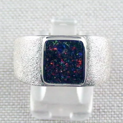 Massiver Silberring mit Boulder Opal – Herrenring mit Fairy Boulder Opal in verschiedenen Ringgrößen erhältlich – Immer ein Unikat! Ein wunderschöner massiver Ring bzw. Herrenring besetzt mit einem Fairy Boulder Opal aus Australien. Der Musterring wiegt ca 15 Gramm bei einer Ringgröße von 64,00 mm Innenumfang. Traumhaft schöner Opal mit sehr intensiven Farben. Bei dem Vollopal wurde das Muttergestein behandelt, es wurde geschwärzt, um den Kontrast zu erhöhen. Der Opal hat ein sehr schönes Farbspiel was sich bei jeder Bewegung ändert. Er ist ein absoluter Blickfang. Die Farben sind in natura intensiver als auf dem Foto oder im Video. Ein massiver Männerring aus 935er Silber mit einem Boulder Opal aus Australien. Bei dem angezeigten Ring handelt es sich um einen Musterring. Wählen Sie über die Auswahlmöglichkeiten die passende Ringgröße und die gewünschte Legierung aus und wir werden den Ring für Sie herstellen. Daher ist jeder Ring ein Unikat. Das Rohmaterial der Boulder Opale wurde in Australien geschürft und behandelt. Die Steine wurden von uns geschliffen. Die unten angegeben Daten passen zum Musterring, der für Sie hergestellte Ring wird ähnlich ausfallen, hier wird es nur leichte Abweichungen geben. Wir von der Opal-Schmiede stehen für hohe Qualität und erstellen unseren Schmuck auch dementsprechend. Bevor wir Edelsteine oder auch von uns hergestellten Schmuck anbieten, stellen wir anhand unserer sehr hohen Qualitätsansprüche sicher, dass alle angeboten…