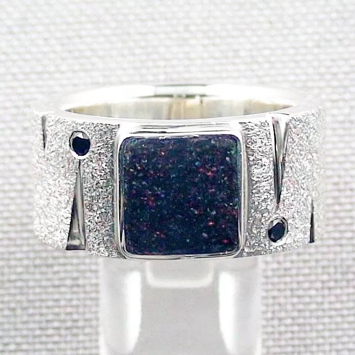 Konfigurator Massiver Herrenring mit Fairy Boulder Opal aus Silber oder Gold – Ring mit Boulder Opal und Diamanten in verschiedenen Ringgrößen erhältlich – Immer ein Unikat! Ein wunderschöner massiver Herrenring besetzt mit einem Fairy Boulder Opal aus Australien. Traumhaft schöner Opal mit sehr intensiven Farben. Bei dem Vollopal wurde das Muttergestein behandelt, es wurde geschwärzt, um den Kontrast zu erhöhen. Zusätzlich zum Opal wurden auch zwei schwarze Diamanten als Akzentsteine gesetzt. Der Opal hat ein sehr schönes Farbspiel was sich bei jeder Bewegung ändert. Er ist ein absoluter Blickfang. Die Farben sind in natura intensiver als auf dem Foto oder im Video. Ein massiver Männerring aus erhältlich in Silber oder Gold mit einem Boulder Opal aus Australien und Diamanten. Bei dem angezeigten Ring handelt es sich um ein Musterring. Wählen Sie über die Auswahlmöglichkeiten die passende Ringgröße und das Ihre Wunschlegierung aus und wir werden den Ring für Sie herstellen. Daher ist jeder Ring ein Unikat. Das Rohmaterial der Boulder Opale wurde in Australien geschürft und behandelt. Die Steine wurden von uns geschliffen. Die unten angegeben Daten passen zum Musterring, der für Sie hergestellte Ring wird ähnlich ausfallen, hier wird es nur leichte Abweichungen geben. Wir von der Opal-Schmiede stehen für hohe Qualität und erstellen unseren Schmuck auch dementsprechend. Bevor wir Edelsteine oder auch von uns hergestellten Schmuck anbieten, stellen wir anhand…