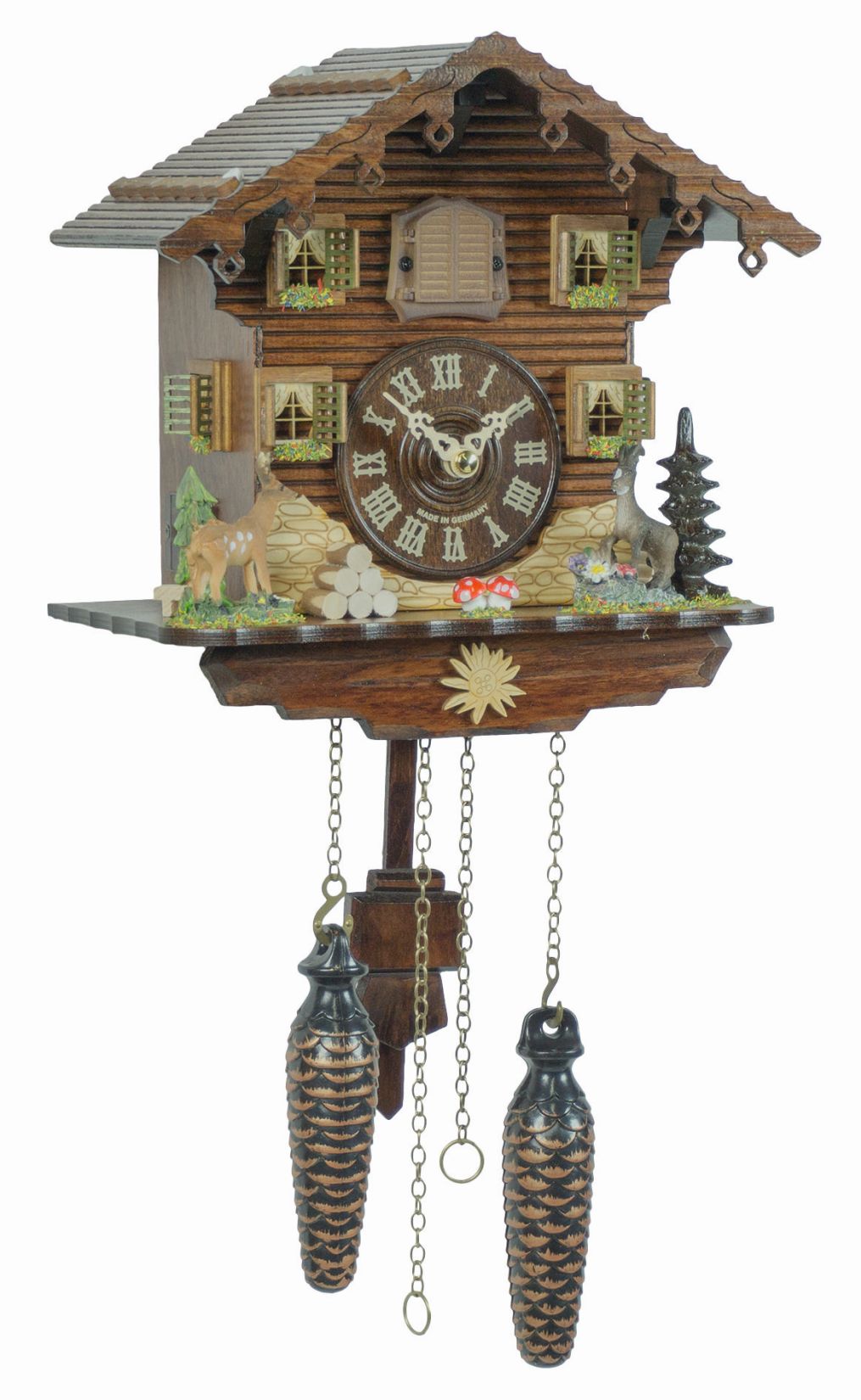 <br /><br />Die Kuckucksuhr ist mit schönen Details versehen sowie mit einem Reh, einem Bock, Pilzen und Baumstämmen.