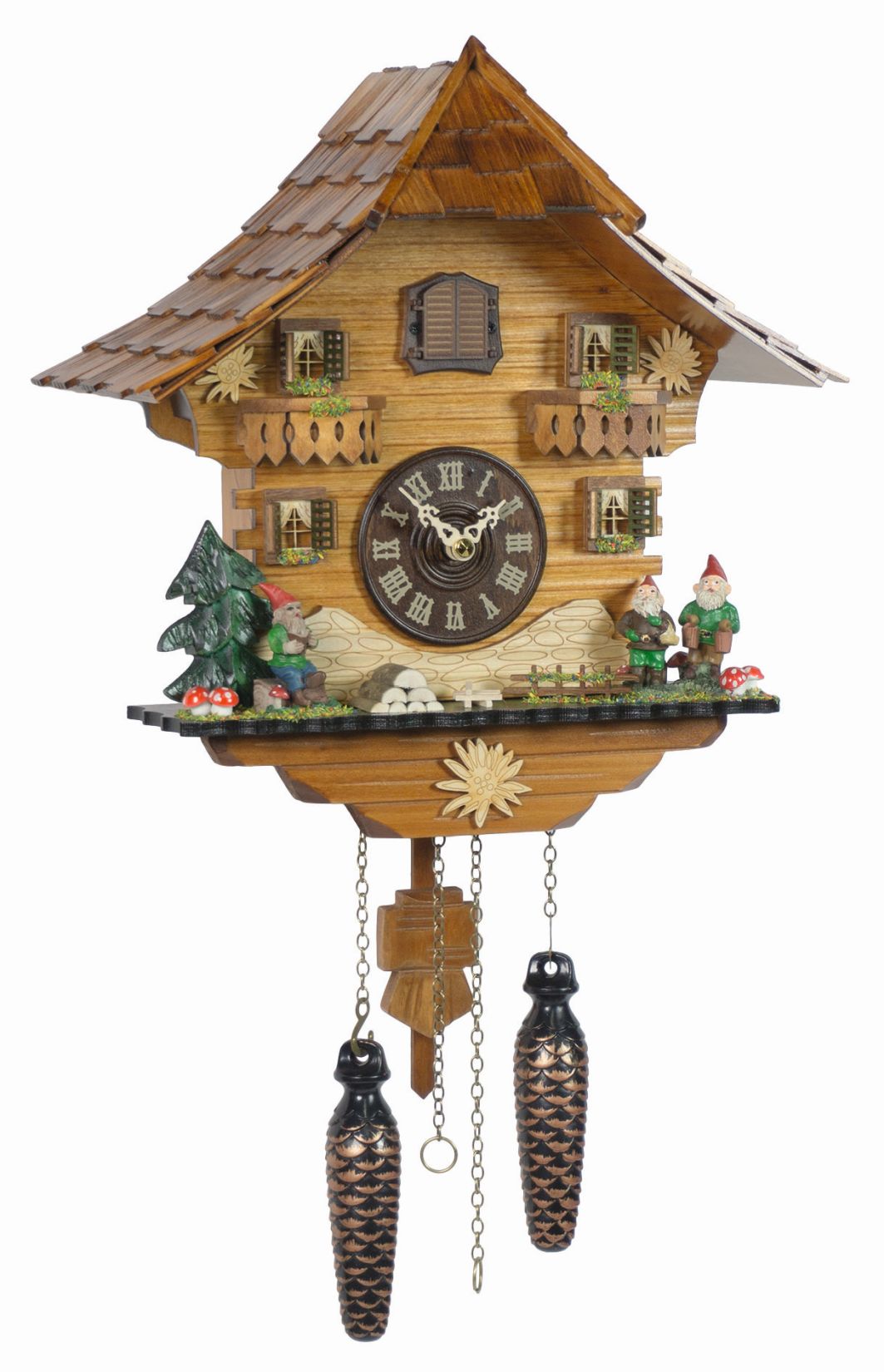 <br /><br />Die Kuckucksuhr ist mit schönen Details versehen und zeigt eine Szene mit Gartenzwergen.