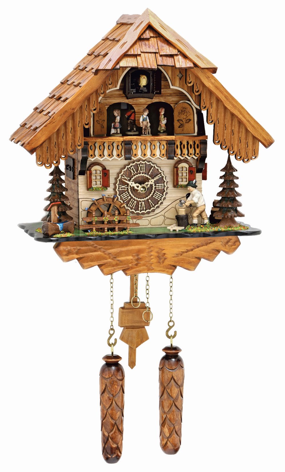 Kuckucksuhr Haldenhof mit 12 Melodien und drehenden Elementen