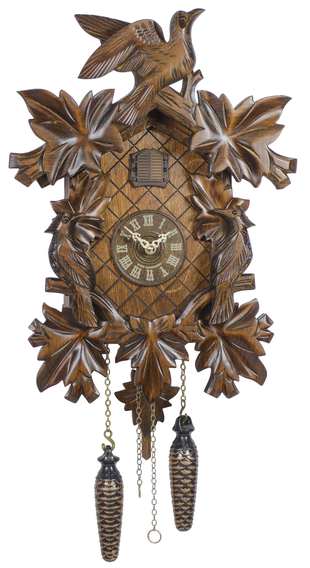 Etwas dunkler gebeizt, mit automatischer Nachtabschaltung, 12 Melodien, präzises Quarzwerk, Holzzifferblatt und Holzzeiger.