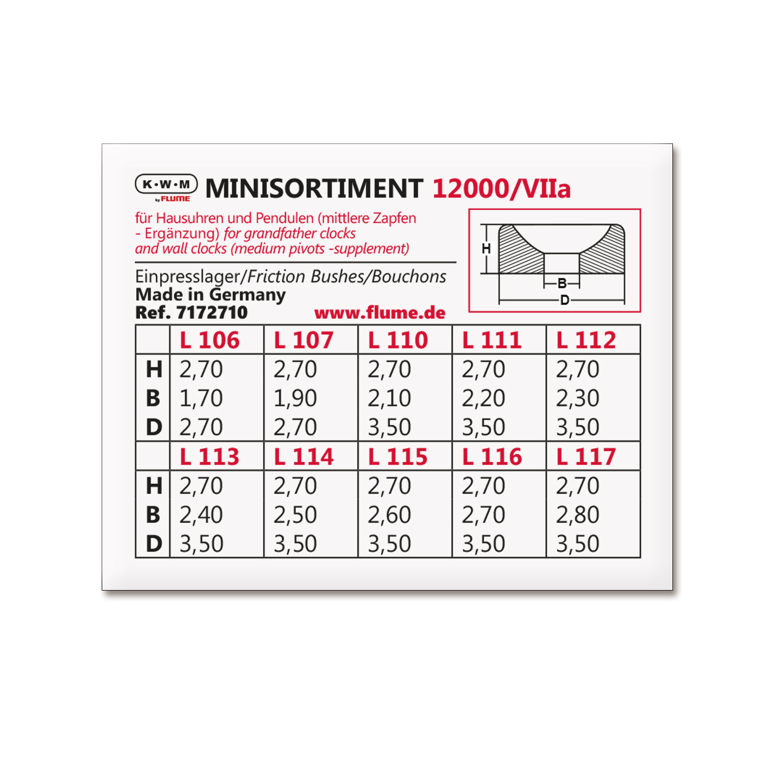 KWM Einpresslager-Sortiment Zapfen-Ø 1,7 – 2,8 mm