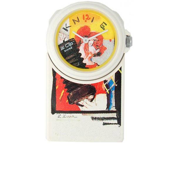 Original Rolf Knie Uhren – Schweizer präzisions Quartzwerk- Zifferblatt mit Charlie Rivel Portrait von Rolf Knie- weisse Stabzeiger- Weisses Duroplast Kunststoff-Gehäuse  drehbar (Vakuum)- Klipgehäuse weiss mit Bild von ROLF KNIE- kratzgeschütes Mineralglas (flach)- Krone metall (geschützt)- KlipmechanismusDruck nach einem original Bild von Rolf Knie- Die Rolf Knie Serie ist eine limitierte spezial Edition. – Nur solange Vorrat!wassergeschützt(nicht zum Schwimmen geeignet)27 x 50mm,2 Jahre GarantiePreis inkl. original Box, Produkteinfo, Halterung zur Arretierung Charlie Rivel (1896-1983) war ein weltberühmter spanischer Clown. ⬈ Wikipedia Entdecke die hochwertige Qualität dieser parktischen Uhr mit Klipp-Mechanismus! Rolf Knie Uhren mit Garantie vom Schweizer Uhrmacher Ungetragene Le Clip Uhr aus den 90er Jahren. Die Uhr kann gerne vor einer Kaufentscheidung besichtigt, und auch vor Ort in Basel abgeholt werden. Portofreie Lieferung. Weitere Produkte von ⬈ Rolf Knie Charlie Rivel: Akrobat schö-ö-ö-n Rivel war einer der beliebtesten Clowns und neben Karl Valentin und Grock einer bekanntesten Humoristen des 20. Jahrhunderts. Er wurde 1896 als Josep Andreu i Lasserre in Spanien geboren und ist 1983 in Katalanien verstorben. Eines seiner bekanntesten Zitaten war: “Jeder Mensch ist ein Clown, aber nur wenige haben den Mut, es zu zeigen.” Le Clip im Blog rund um die Uhr